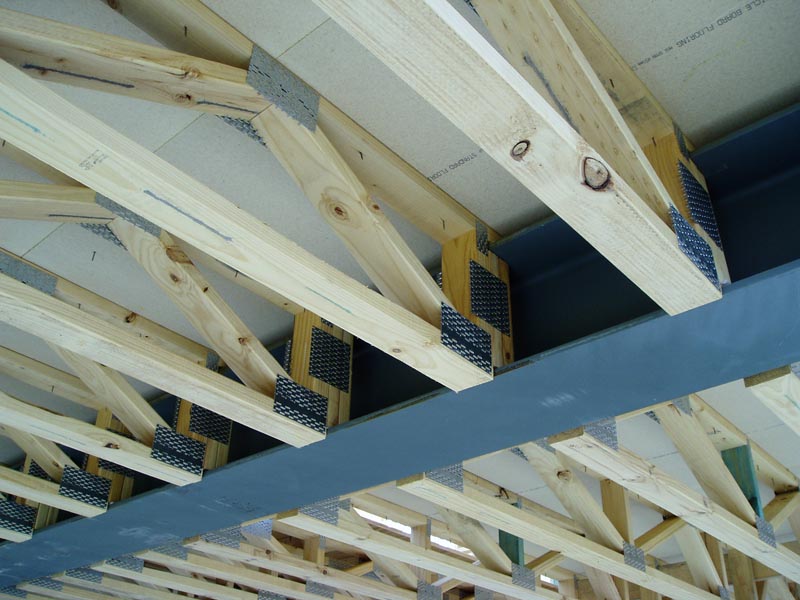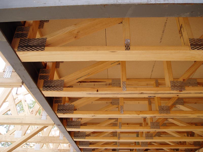 Pryda Longreach can be designed for all common floor loads, including commercial loadings. These trusses are all timber, dissipate floor vibrations very well and the nailplates connecting the webs and chords are quite substantial.